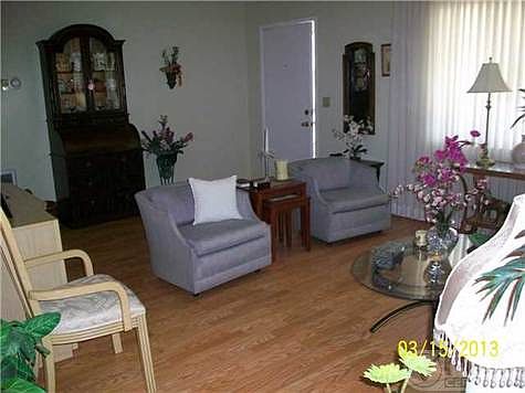 Nicely updated Challenger Model with laminated wood flooring, duel sink in updated master bathroom, Newer appliances in Kitchen. Cozy screened in back patio with roll ups. Front open patio with designer cement walk and driveway. Southern Coating 2013 with 5 year warranty. Impact resistant 2004. **** Walking distance to Clubhouse, Pool and shuffle board. Close to Restaurants, shops, medical facilities, I95 and beach. Very active community. Paid Rec Lease. Use ''AS IS'' FAR/BAR Contract.
