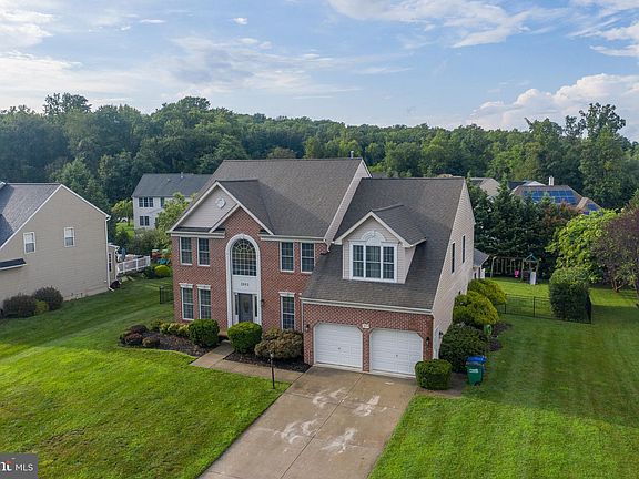 Welcome to 2093 Titan Terrace, an exceptional home located in the highly sought-after Greens at Rock Glenn community of Havre de Grace—just a swing away from Bulle Rock Golf Course! This beautifully maintained residence offers over 5,000 square feet of thoughtfully designed living space, blending luxury, comfort, and functionality. Step into the dramatic entry foyer and main living area, where soaring ceilings and a large arched-top window flood the space with natural light. A striking geometric chandelier makes a bold design statement, while the open-concept layout connects the main living room, dining room, and kitchen for effortless flow. The formal dining area is accented with classic chair rail molding, and the gourmet kitchen is beautifully appointed with stainless steel appliances, a six-burner gas cooktop with vented hood, granite countertops, mosaic tile backsplash, and both pendant and recessed lighting. A large center island with bar seating offers additional prep space and casual dining. Just off the living area, a private office/den with French doors provides a quiet space to work or relax, and a modern half bath completes the main level. Upstairs, the interior balcony overlooks the expansive main floor and leads to the oversized primary suite, featuring a vaulted ceiling and abundant natural light pouring in through large windows. The spa-like en suite bathroom includes LED-lit mirrors, a soaking tub, and a gorgeously tiled walk-in shower with dual brushed gold rain showerheads and coordinating gold finishes. Three additional spacious bedrooms and a full hall bathroom with dual sinks complete the upper level. The fully finished basement is an entertainer’s dream, offering a large recreation room with a custom full bar and built-ins, recessed lighting throughout, and ample room for lounging, games, or gatherings. A dedicated home theater room with surround sound creates the ultimate cinematic experience. The lower level also includes a private bedroom and an additional full bathroom, making it perfect for guests or extended family. Step outside to enjoy the expansive rear deck, which leads to a lush, professionally landscaped, and well-manicured backyard—perfect for outdoor entertaining or peaceful relaxation. Ideally located just minutes from shopping, dining, and the waterfront charm of downtown Havre de Grace, this stunning home offers the perfect balance of elegance, space, and lifestyle convenience.