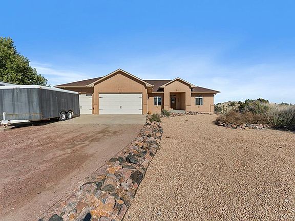 Welcome to your dream home! This exceptional property, situated on a sprawling 1-acre lot, features 5 spacious bedrooms and 3 full bathrooms—perfect for families or those who love to entertain. With a 3-car garage, a storage shed, and RV parking, you'll have all the space you need for your vehicles and outdoor gear. Enjoy breathtaking mountain views from your large covered back patio—ideal for morning coffee or evening sunsets. Located just 15 minutes from Pueblo Reservoir, this home offers the perfect blend of tranquility and convenience with easy access to Hwy 50 and I-25. Step inside to discover a stunning kitchen equipped with granite counters, beautiful cabinetry, a pantry, and a generous island. The walnut hardwood floors and luxury vinyl flooring flow throughout the main areas, enhancing the elegant ambiance. A formal dining room and an inviting eat-in area provide additional spaces for gatherings, while the great room, complete with a cozy gas fireplace, is perfect for relaxation. The expansive basement is a true highlight, featuring a stylish bar, ample space for a projector, study/office space, media setup and/or workout area—ideal for entertaining or unwinding. This thoughtfully designed floor plan features a large private master suite, boasting dual vanities, a luxurious oversized spa tub, a separate shower, and a California-style walk-in closet. The entire property is xeriscaped, allowing you to sit back and relax without the worry of extensive landscaping. Don't