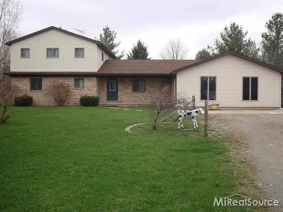 Peaceful living awaits on 5 acres with a spring fed 14 ft deep pond. Walking paths, full woods, and a 20 ft gazebo. Large updated kitchen with pantry and extra bar area. Large great room. Updated bath with oversized tub. Newer roof and furnace. Energy efficient oversize garage with work room. 4 bedrooms plus a huge office, 2 and 1/2 baths. Large garage. Home will not last long in this hot market!!