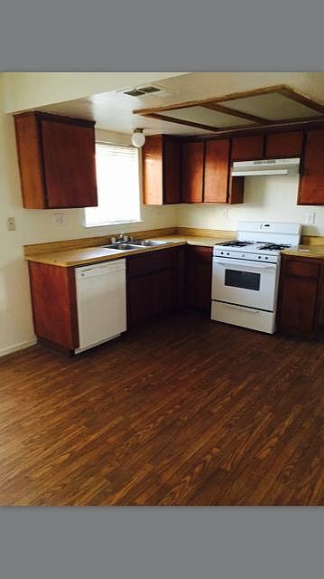 2 bedrooms, 1 bath, private garage w/washer&dryer hookup; one outdoor parking space; dishwasher; ceiling fans and courtyard; fireplace Friendly and safe community. Up to one small pet OK (cat/dog under 25 pounds) with a pet deposit of $100. Owner pays for trash and sewer; Tenant pays for gas, electric; Tenant must supply their own refrigerator.