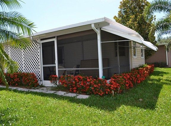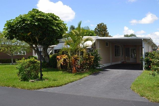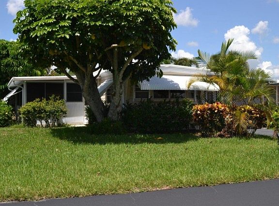 Single wide 2br/1.5 bath coach home in popular 55+ West Lakes of Boca Raton. Highly desirable lakefront location. This home features both a glass enclosed Florida room AND a screened patio that overlooks the lake. Home has built-in dressers in both bedroom, a built-in wall unit in the living room, two storage sheds and a large storage closet in the hallway. There is a washer/dryer hookup on the screened patio. $140/mo maintenance fees include lawn care, common area maintenance & basic cable. West Lakes features social activities, clubhouse, pool, shuffleboard, bocce ball & a fabulous screened picnic area. Close to golf courses, shopping, and Boca's fabulous beaches. Perfect for seasonal or year-round Florida living!
