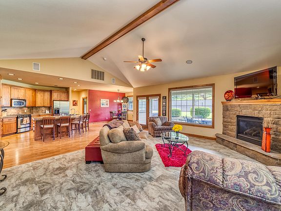 Stunning custom built single-level in desirable neighborhood. This 3,031 home has an open floor plan that features 3 bedrooms with walk in closets, 3.5 bathrooms, tile shower, soaking tub, office space, beautiful hardwood floors, and a large kitchen island. Triple door five car garage heated with custom epoxy floor. Perfect space to park all your Central Oregon toys. Large bonus room above the garage with AC and bathroom. Covered patio in the backyard is great for entertaining and has a BBQ stub. Dog kennel with runs. Property is located on quiet Cul-de-Sac and is immaculate! Close to new Alpenglow Community Park that will be completed in summer of 2022.