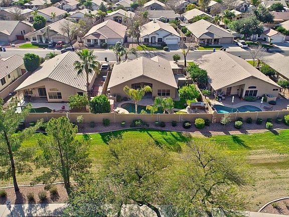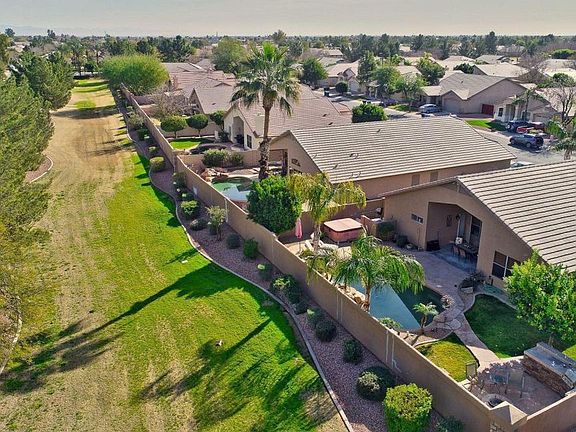 Captivating single story home in FINLEY FARMS! Elegant 4 bedrooms, 2 bathrooms, kitchen has rich cabinets, granite counters, tumbled stone backsplash, & stainless steel appliances. Clearwater whole house filter & R/O system. Pebble sheen pool, rock waterfall, rock pool accents, built-in outdoor seating around fire pit, customized flagstone decking, outdoor kitchen. 2 1/2 garage w/ epoxy flooring and plenty of storage cabinets, double RV gate and finished parking space with a greenbelt behind this North-South facing home. IMPECCABLE back yard oasis-even better in person than photos! Entertaining or relaxing cannot be beat in this beautifully landscaped private backyard. Gilbert schools, conveniently located to everything; rare single story, 4 bedroom home w/a pool in Gilbert under $350,000!