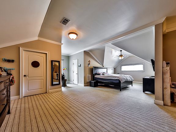 - Interior: 10 ft+ Ceil Main, Double Vnty Other, Entrance Foyer, Trey Ceilings, Wall/Wall Carpet, 9 ft + Ceil Lower, Bookcases, 9 ft+ Ceil Upper, His & Her Closets