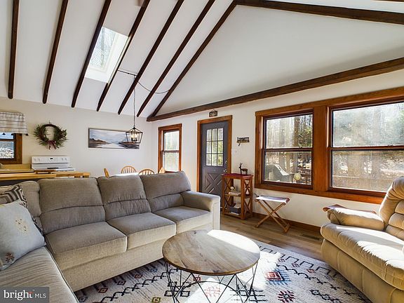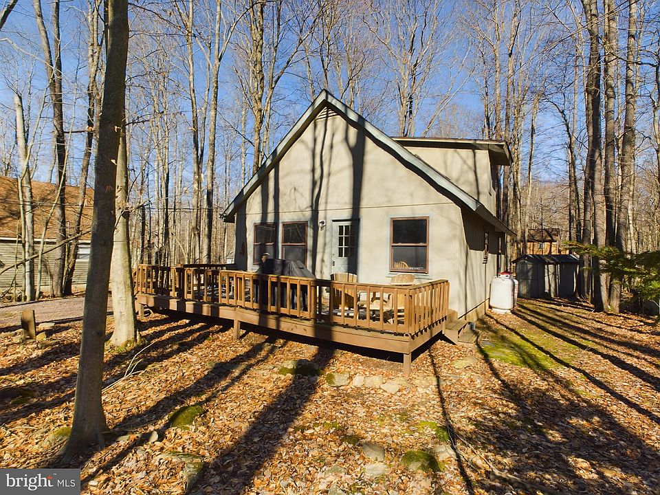 A-Frame Chalet in the gated, amenity-filled community of Arrowhead Lake. This 3 bedroom, 2 bath home is the perfect getaway home or year-round home. The main floor has 2 bedrooms, living room with laminate hardwood floors, cathedral ceiling and a skylight, full kitchen, and a laundry room. Upstairs is a large loft bedroom with a full bath. Home has central A/C, a large front deck, an encapsulated crawlspace with a vapor barrier, and a fire pit in the yard. Dual fuel heating system, electric heat pump with propane backup. Home is on a community sewer and close to amenities. Arrowhead Lake is a gated community with security, 3 heated swimming pools, 2 lakes for fishing/swimming and boating, tennis courts and bocce ball. Many of these activities have occurred over the years including bonfires, carnival, Zumba, water aerobics, swim team, potluck dinners/breakfast and summer camp.