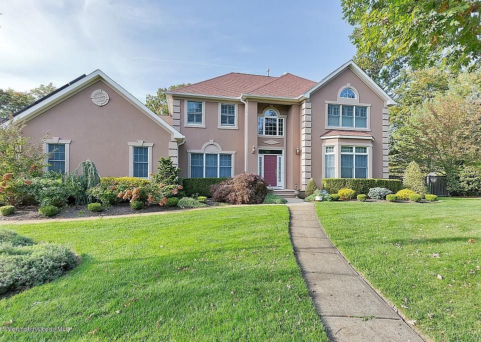 This is your chance to live in one of the most desirable areas of Wall Twp: Misty Hollow. Homes rarely come on the market in this sought-after community. This beautiful Stoneleigh model boasts 2-story foyer, 5 bedrms (l on lst fl.: perfect for Mother/Daughter), Spacious MS bedrm with cathedral ceilings, 4 full baths, finished basement w/ full bath, upscale kitchen with granite, 2,852 sq. ft. The gorgeous expansive saline heated pool is surrounded in privacy with professional landscaping and perennials on oversized lot: 289 x 203. Custom designed outdoor kitchen: granite counter, overlooking yard and pool. Newly installed backup generator for entire home , and solar panels for additional savings. Elementary school just minutes away along with pristine beaches, golf. Commuters delight