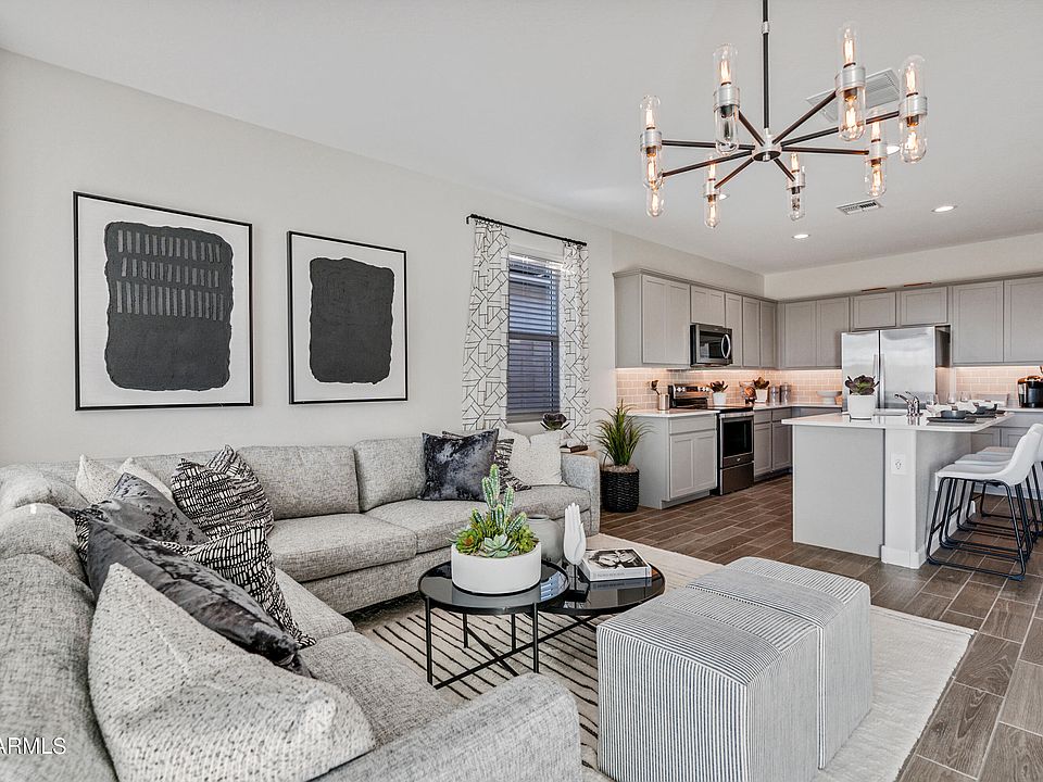 Need extra storage space? How about a 3 Car tandem garage! 3 CAR GARAGE! Brand new construction, home under construction, est completion April/May. Our premier community located in Buckeye of Desert Moon Estates. This Dove floor plan includes 3 bedrooms and 2 baths, 1601 square feet. The upgraded Burlap shaker style Cabinets add a custom feel to your gourmet kitchen, plus Quartz kitchen counter tops, upgraded stainless steel appliances, range/oven (convection/self clean), microwave and dishwasher. Additional upgraded features include 6 x 24 inch wood look plank lay tile everywhere but bedrooms, upgrade carpet in br's. To complete package, Window blinds are included t/o with verticals on Sliding Glass Door. Pictures are of model home.