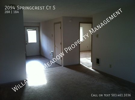 Welcome to this charming 2-bedroom, 1-bathroom single-family home located at 2094 Springcrest Ct SE, in the tranquil Sunnyslope neighborhood of Salem. This ~ 1,000 square foot residence provides a cozy and inviting space, ideal for those seeking both comfort and convenience. The open-concept living area seamlessly flows into a bright and airy kitchen, perfect for relaxing or hosting family gatherings. The home features two generously sized bedrooms and one well-appointed bathroom. The open living and dining areas create a functional and versatile layout, while the kitchen is equipped with ample storage space, meeting all your culinary needs. You'll also enjoy the private backyard space, perfect for outdoor relaxation or entertaining. An attached garage provides additional storage and secure parking. Set in a quiet cul-de-sac, this home offers a peaceful living environment. Located in the highly desirable Sunnyslope area, the property is near Schirle Elementary, Crossler Middle, and Sprague High School, making it a convenient choice for families. Additionally, you'll find yourself just a short drive from shopping, dining options, local parks, and quick access to major highways for easy commuting. This home is perfect for small families or professionals looking for a serene place to live. Priced at approximately $1,495 per month, it offers great value in a prime location. Don't miss out on this wonderful rental opportunity! CLICK LINK BELOW TO SCHEDULE SHOWING You can also explore walkthrough videos of this property and others on our website. Willamette Meadow Property Management offers convenient online services, including easy application submissions, quick rent payments via E-Check or credit card, and hassle-free online maintenance requests. We prioritize our tenants' well-being by promptly addressing work orders and being attentive to any issues that arise in your rental. We believe in maintaining a harmonious balance between owner and tenant, and we're committed to creating that balance for you. Disclosure: All initial rental agreements are for 11 months, and all agreements require renters insurance unless exempt by law. Additionally, all Willamette Meadows Property Management Inc. residents are enrolled in the Resident Benefits Package (RBP), which includes HVAC air filter delivery (for applicable properties), a utility concierge service to simplify your utility connections during move-in, our best-in-class resident rewards program, and much more! Additional details are available upon application. 1 Bathroom 2 Bedrooms Cadet Heaters Crossler Middle School Fenced Backyard With Deck New Garbage Disposal New Range Newer Floors Newer Paint Newer Refrigerator None Quiet Cul De Sac Schirle Elementary School Single Car Garage Sprague High School Washer And Dryer Hookups