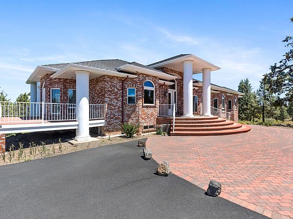 Magnificent colonial brick home sitting on a large private 6.45 acre lot with 2.5 acres of COID irrigation. Perfectly placed, you will enjoy territorial and mountain views from every window. This home is light and bright with an open concept floor plan. The 3,875 main floor features the large primary bedroom with spa like en suite, two additional bedrooms a formal dining area, den and large living room with vaulted ceilings, fire place and bar. The gourmet kitchen is a chef's dream! The 1099 sq foot daylight basement is fully finished with one bedroom, den, two full baths and kitchenette. With 2,653 of garage space, this home has a large 4 car garage and massive RV garage. Your cars will live in as much style as you! All of this is connected with a convenient elevator to make unloading groceries a breeze! The lot is zoned SR 2 1/2 with potential for subdividing. If you are looking for a family compound you need look no further!