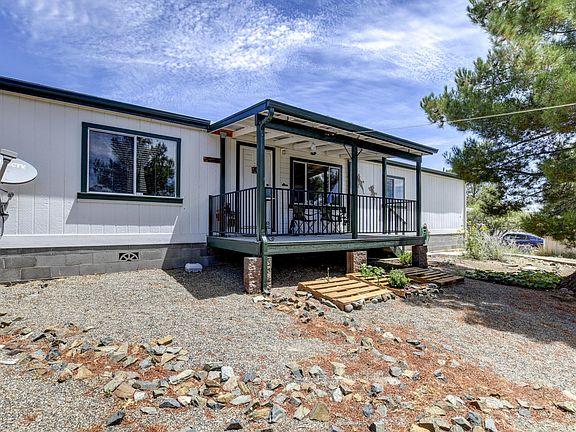 Cute home in Cordes Lakes that seems never ending! Open mountain views from this property backing to BLM State Land. Great split floorplan home with living room and family room giving you the privacy you want or even guests. Open kitchen and dining room great for entertaining guests or a quite night in. Escape to this private master suite after a long day. Additional bedrooms are perfect for guests or an at home office. Great covered front deck to enjoy the morning sunrise! Back porch is perfect to relax and enjoy the evening sunsets and the panoramic views! Fully fenced lot is great for pets! Come see this great home before it is gone!