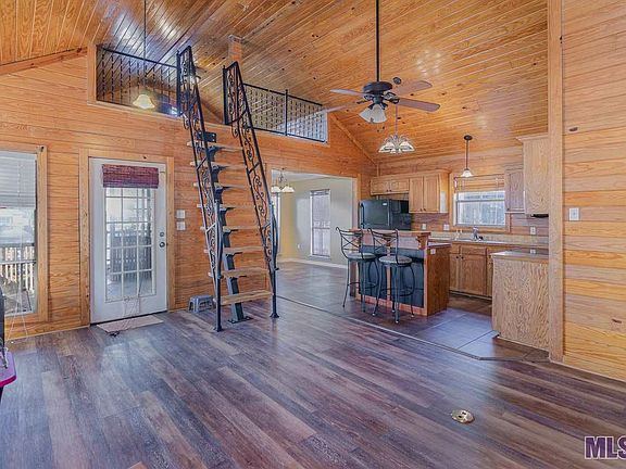 2 bed/2 bath cottage with loft on THE DIVERSION CANAL. Open floor plan with vaulted ceilings, and Beautiful TONGUE AND GROOVE PINE PLANKS on the ceiling and walls. New vinyl plank flooring in the living room and bedrooms. Come take in the views from your 24x9.5 deck across the front of the cottage. Home has 2 BOAT SLIPS and a boat lift. this PRIVATE, TRANQUIL ISLAND COMMUNITY features a community pool and can be accessed by golf cart, foot, or boat. There is a designated parking lot for island homeowners. Loft is not included in the square footage.