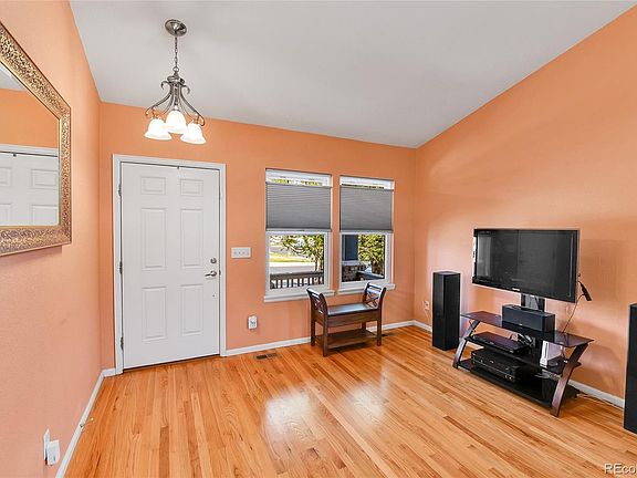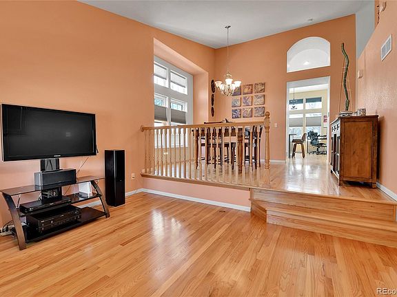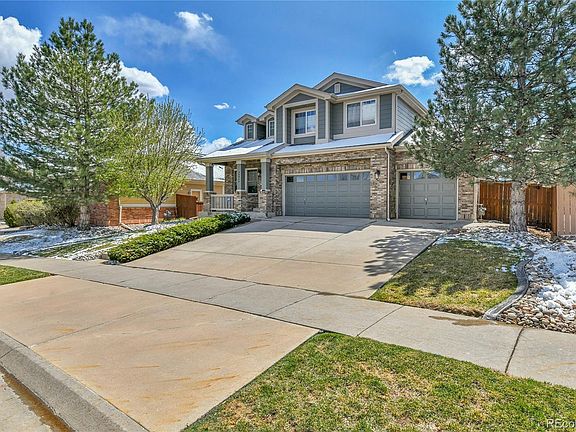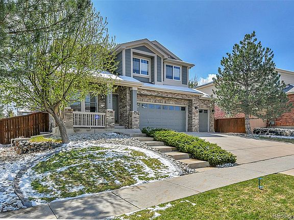 Move in ready home with upgrades like you would find in a model home! This wonderful home with beautiful landscaping has been lovingly cared for by the original owners. A Perfectly manicured front lawn with concrete curbing welcomes you to the covered front porch. Step inside and feel the warmth of the hardwood floors in the formal living room. Visualize the entertaining you will do as you pass through the separate dining room and into the beautifully upgraded kitchen. The kitchen is the heart of the home with 42" cabinets, granite counters, upgraded light fixtures, Newer stainless steel appliances and a pantry. The kitchen is open to the large family room with gas fireplace and more hardwood floors. You will be delighted to see the gorgeous back yard oasis boasting Maple, Hawthorne, and Aspen trees providing plenty of shade, a raised garden with rich soil, along with beautiful perennial flowers all around. Grilling on your oversized patio after work and then relaxing in the hot tub under the stars is a perfect way to relax and unwind. Back inside go upstairs to find a large primary suite with 2 walk in closets, vaulted ceilings, and bay window sitting area. 2 more beds and a full bath round out the second level. *New in 2025: Stainless fridge with dual ice makers.* *New in 2024: Roof, Gutters, Air conditioner, Oven, Microwave and Exterior paint.* *New in 2023: Washer + Dryer.* *New in 2022: Furnace, Water Heater and all window glass!* The hot tub will be drained, refilled and the filter will be replaced for new owners. The whole house has top down bottom up black out blinds. The unfinished basement has upgraded windows and is a blank canvas for you to add a bedroom or extra living space and a bathroom. This peaceful neighborhood features a greenbelt leading to a park with playground, highly rated school and offers easy access to E-470. Close to DIA, Southlands shopping and dining. Don't miss your chance to own a beautiful home top to bottom with tons of upgrades!