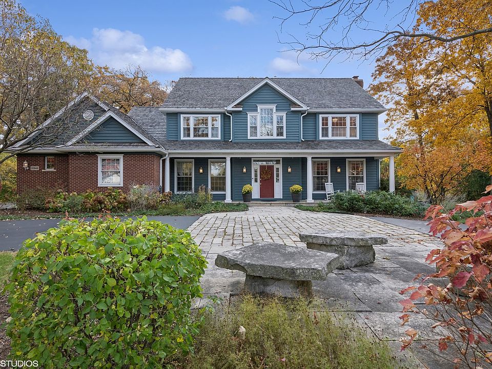 Welcome to this stunning home set in desirable Swansway, perfectly nestled on a picturesque 1-acre cul-de-sac lot, balancing serene privacy with unmatched convenience to shopping, dining, parks, and endless trails for hiking and biking. A charming front porch greets you, leading into a grand two-story foyer lined with wide-plank hickory hardwood flooring that flows seamlessly throughout the main level. Flanking the entry, you'll find an elegant dining room and French doors to the office / living room - flex to fit your lifestyle. The sunlit chef's kitchen is truly the heart of the home, boasting a two-tier island, premium appliances, and an inviting eating area. It opens up to the cozy family room, complete with a gas fireplace and sliders that lead to an expansive composite deck, installed in 2020 - ideal for relaxing and entertaining. The main level is thoughtfully designed with a spacious laundry room, powder room, and plenty of storage. Upstairs, double doors welcome you to the luxurious primary suite where you'll find a large walk-in closet and a spa-inspired ensuite with on-trend barn door entry, dual sinks, an MTI whirlpool tub and separate shower. Three generously sized secondary bedrooms, a hall bath with double sinks and attic storage (perfect for future expansion) provide comfort and space for everyone. The finished English lower level is a haven for entertainment, featuring a large rec room, custom wet bar, a game or exercise area, a full bath, and additional storage. Outside, enjoy the sprawling lawn with playset and surrounded by mature trees for the ultimate privacy - your very own secluded oasis. A three-car garage equipped with an EV charger, a new cedar shake roof installed in 2022, and access to top-rated Lake Zurich D95 schools complete this picture-perfect property. This home offers the best of both luxury and convenience - a true gem!