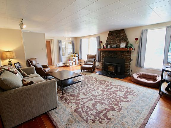 This cabin has a open floor plan and efficient wood burning fireplace for cozy nights. Beautiful views from every window and especially the deck! The kitchen features ample cabinet space, new stainless appliances, and a built in breakfast bar/desk. The master bedroom is spacious with direct access to one of the bathrooms. There is a mudroom when you first enter the home. There is an unfinished basement with a washer and dryer and lots of extra storage space. A detached garage and fully fenced yard with play structure round out this home. In the summer, the field across from the home is full of friendly horses for the summer camp just down the road. Deposit is one month's rent. Tenant is responsible for all utilities. Dogs are negotiable with an additional fee. Available for immediate occupancy. Sq Ft is approximate. Tenat pays all utilities