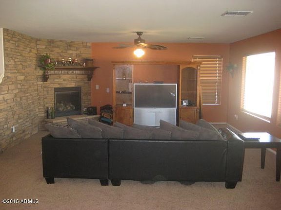 This two story, 4 bedroom 3 full bath, 2529 square foot, 2 car garage homes sits on a 10454 square foot lot and is at the end of the cul-de-sac. This home has a formal dining room, living room and family room and one bedroom and full bath are on the first floor. The kitchen has stained maple cabinets, kitchen island, black appliances and a nice size pantry and reverse osmosis. The family room has a gas fireplace with a beautiful rock wall. The master bedroom and two other bedrooms are on the second floor as well as the laundry room. The upstairs also has a nice sized loft. The master bath has a separate tub and shower, vanity with dual sinks, and a spacious walk-in closet. There is an additional full bath for the other two bedrooms. There are ceiling fans throughout the home,