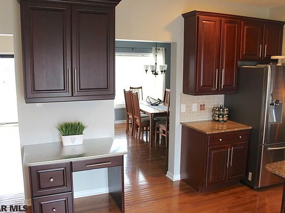 This magnificent Foxpointe home sets the bar for beautiful luxury in this highly desired neighborhood! As you enter this elegant 5 bed 3.5 bath brick home, you'll be thrilled with hardwood floors, open first floor plan, updated kitchen and spacious feel of the 3,462 sq. ft. home! The upstairs has 4 bedrooms including master suite with a 2-room walk-through closet. 2nd floor laundry, central air, efficient natural gas heating, custom cabinetry, Samsung smart fridge, home wired for sound, and unforgettable lower level for entertaining with additional bedroom! The remodeled lower level was done with HGTV worthy quality and style. The bar is surrounded by stacked stonework, 2 refrigerators, wine cooler, dishwasher, wall mount TV, and walks out to a custom concrete patio. Enjoy starlit evenings on the patio by the granite-topped gas fire pit or on the large composite deck while taking in views of the surrounding mountain ranges. This is the crown jewel of Foxpointe!