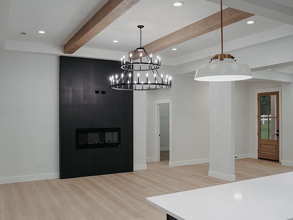 Welcome to your modern farmhouse oasis with real wood columns from the very entrance! This stunning residence offers three bedrooms with a bonusroom and a wealth of custom features, situated in the rapid growing Reidville, free from HOA restrictions. Step inside and be welcomed by the spacious living room, boasting a soaring 12-foot ceiling, oversized windows that flood the space with natural light, and an eye-catching accent wall surrounding the fireplace, perfect for cozy evenings. Adjacent, the dining area features a lofty 10-foot ceiling, creating an elegant atmosphere for hosting gatherings and enjoying meals together. The kitchen is a chef's delight, showcasing a custom-built range hood, sleek floating shelves, and a striking backsplash that extends all the way to the ceiling. Every detail of this home has been carefully considered, from the custom-crafted closed shelving to the charming barn door that adds a touch of rustic charm to the master suite. Luxurious porcelain tile graces the bathrooms, while durable luxury vinyl plank flooring flows seamlessly throughout the house, offering both style and practicality. Outside, a spacious covered back patio awaits, providing the perfect spot for outdoor entertaining the privacy of the fenced in backyard. Additional features include an 8-foot triple-layer insulated garage door with windows, adding both functionality and curb appeal to this already impressive property. Don't miss out on the opportunity to make this modern farmhouse your forever home. Schedule a viewing today and experience the epitome of stylish and comfortable living!