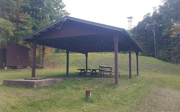 Absolutely gorgeous piece of property! Get away & relax. Fish &/or swim in the pond. Shooting range. Woods all around. Property is surrounded by state land. Cabin can sleep 9 in the 2 bedrooms with built in bunk beds. Large kitchen/dining area. Woodburning stove & propane wall unit heats the cabin. It can be lived in all year round because it is insulated. Property includes a pavilion for covered picnicking & cook in the fire pit. Relax at this amazing get away.