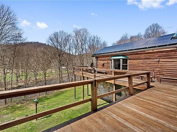 Stream side, Classic American log home w/distinct architectural design sits on nearly 100 acres in the mountain destination town of Confluence, PA. Interior space has a cozy, relaxing atmosphere, many features: natural light, vaulted ceilings, open floor plan, original hard wood floors, custom design stone fireplace, loft area, gathering space for family & friends & walk-in shower and man-made cabinet base. Walk outside to the wrap around deck & enjoy breathtaking views of the Laurel Hill Creek or take a walk down on your personal pathway to one of the most popular fishing spots.  Bones features:  Potential bedroom on lower level & separate office space w/walk-in vault.