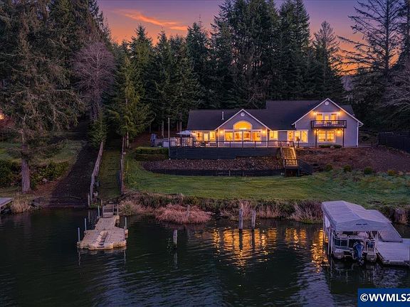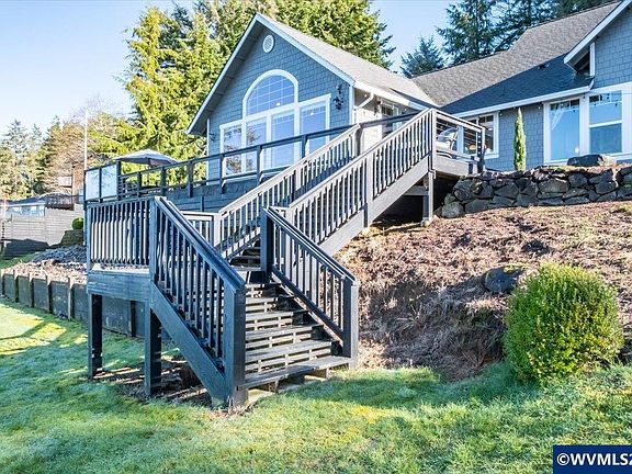 Lakefront living on Devils Lake with approximately 100’ of shoreline. Just minutes from Lincoln City & the beach. Enjoy this gorgeous home designed for entertaining w/views of the lake from almost every room. Access the water from your own boat dock with lift. Above the 3-car garage is a studio apartment w/full bath & kitchenette. Rent it out or let your guests enjoy the privacy. Power shades in great room, interior/exterior sound system & generator. With 2 acres of property, the possibilities are endless!