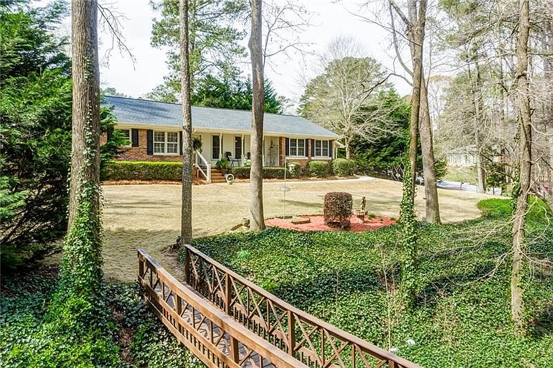 Private, wooded, 1+ acre lot with immaculate 4-sided brick ranch that has the peace and quiet you are longing for. From the charming bridge and flowering trees to the welcoming covered front porch and fully fenced back yard AND everything in between, there is so much to love about this home! The house has been updated with newer electrical, plumbing, hardwood floors, storm windows, water heater (2020), HVAC (2011) and roof (2015). The master suite offers plenty of space and the two secondary bedrooms share a jack-and-jill bathroom. The roomy kitchen boasts stainless steel appliances and connects the breakfast room and the bright family room with its built-in bookcases and cozy fireplace. The garage was converted to a second family room for additional space to relax after a long day. The back patio is accessible from both the family room and kitchen. The backyard contains a storage shed perfect for a workshop and lawn equipment in addition to a 2-story outbuilding for all of your storage needs. Conveniently located near shopping and within walking distance of Main Street and the Towne Green with highly-rated schools, this one wonât last long.