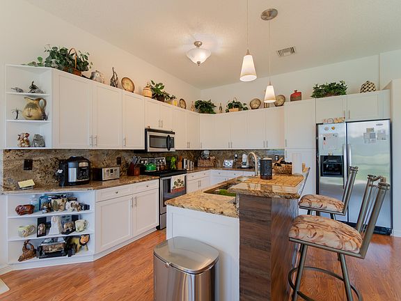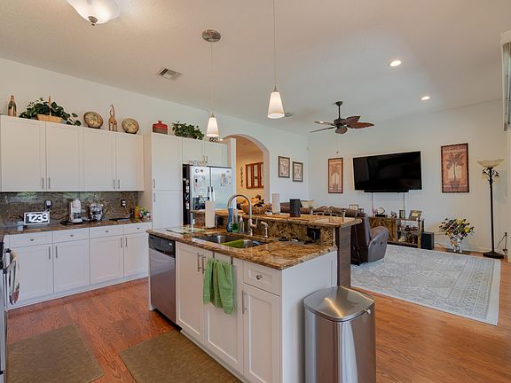 Situated in prestigious Madison Green non equity country club, you will find the home of Mr. & Mrs. Clean. As you enter the home the Double Door entry leads to the rotunda foyer, with 2 year old laminate (LVT) flooring throughout the home. This 2 Bedroom convertible easily converts to a 3 bedroom( just add a closet).Just installed is a brand new a/c. Enjoy jet skiing & other water sports right out your back yard, on the M1 canal. Enjoy the Breathtaking sunrise and relaxing water view form your Screened In Porch, where you can listen to the surround sound speakers there & all throughout the home, The Master Suite has a Beautiful barn door adorning the entrance to the large walk in closet. the Master Bath sports a Roman Whirlpool Tub with separate shower and HIS and HER vanities. No worries when the nasty hurricanes come, as there are Accordion Shutters installed on all windows. You will also have the benefit of on the oversized HURRICANE IMPACT SLIDING GLASS Doors leading out to your screened in porch. Enjoy all the amenities of an upscale Country Club with out the high fees.