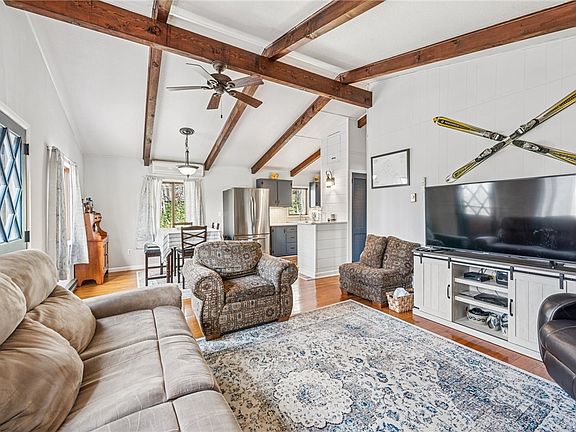Beautifully renovated mountain chalet nestled on 3 wooded lots totaling 1.28 acres, offering a perfect blend of rustic charm and modern updates. This spacious retreat features vaulted ceilings, an open floor plan, and gleaming hardwood floors throughout. The fully equipped galley kitchen includes stainless appliances and a granite counter, ideal for cooking and entertaining. Enjoy the warmth of a fireplace in both the living room and family rooms, along with the convenience of a dedicated home office space and exercise room. Recently updated baths add to the home’s appeal. Step outside to a wrap-around deck that overlooks a private yard and cozy firepit—perfect for relaxing or gathering with friends. A 2-car attached garage completes this mountain getaway.