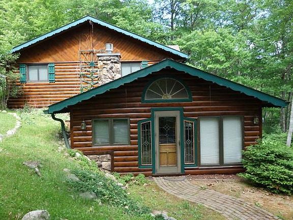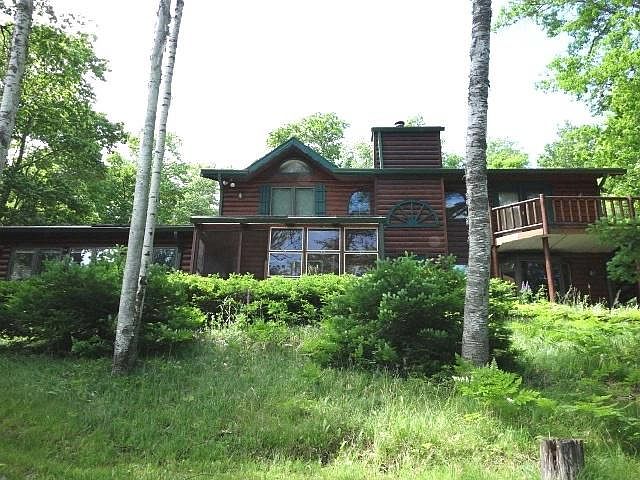 Nestled in the Northwoods with South Eastern exposure and surrounded by hundreds of acres of Wisconsin state land, this home provides the utmost privacy and storage that you are looking for. This cedar half-log home offers a spacious kitchen, open dining and living room with Vermont Castings wood stove, a GREAT family room with an abundance of sunshine PLUS a 3-season room with incredible views of the lake. The spiral staircase leads to the 3 upper level bedrooms and bathroom. Great storage including an 8x8 playhouse, two garages, insulated workshop and turn-around driveway all of which sits on over 3 acres of land with 207' of frontage on Roach Lake. A fire pit, dock and endless fun are found at your "up north" home! End of road privacy and close proximity to snowmobiling and ATV trails makes this the perfect Northwoods destination.