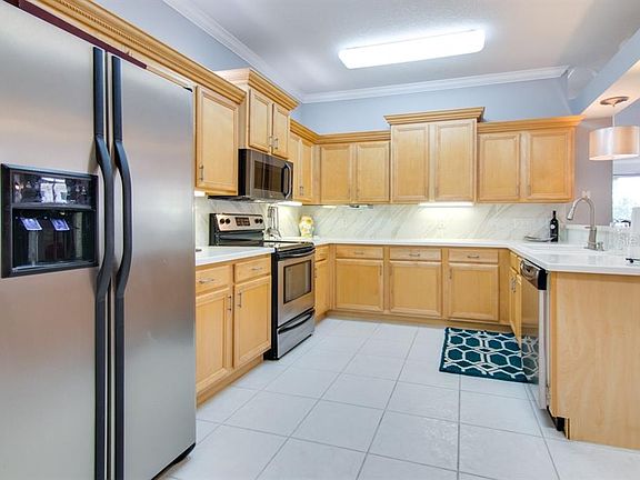 View the 3D Virtual tour and fall in love. Resort style living at its finest! You deserve the best at such an amazing value and this community has something for everyone! This could be your full time home, vacation home, or winter home. Truly move-in ready with tranquil water views from the living areas and master bedroom. This home is a very upgraded 3 bedrooms, 2 baths gem featuring an open concept with high ceilings, crown molding, decorative niches, a split floor plan, and a spacious kitchen any chef would appreciate. Kitchen was thoroughly upgraded with Staggered Maple Cabinets, Rope Crown Molding, Under Cabinet Lighting, Upgraded Countertops and matching Backsplash, Stainless Steel Appliances and easy maintenance tile floors. All appliances are included even the washer and dryer. Master Bathroom features spacious double vanity sinks with eye catching white cabinets, drawers, and shelves and gorgeous granite countertops and an adjacent oversized walk-in closet. The ROOF was replaced Feb 2020. HOA mows the lawn, paints the exterior (choice of color), replaces the roof and includes Spectrum Cable with WIFI, Phone and TV. All you have to do is enjoy all the amenities of The Groves such as golf, tennis, swimming, socials, Clubhouse, Gym, Jacuzzi, Bocce, Tennis, Shuffleboard, Computer Room, Library, Ceramics Studio, fishing hole, nature trail, gated security, dog park, butterfly garden and much more! Drive everywhere on your golf cart! Even to the grocery store. Easy commute to Tampa airport. Once you visit The Groves, nothing else will do! **All furniture optionally included at no additional cost including decorations, rugs, TV's, linens, and kitchen wares. Move right in! Piano, elephant, and large metal chair in LR do not convey.** Make this your Future Home!