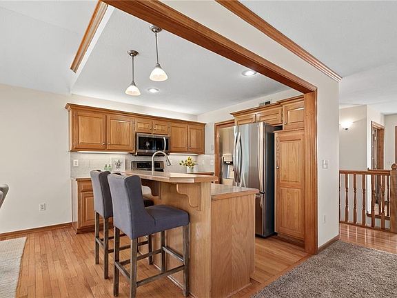 This Is The One You Have Been Waiting For! Stunning Raised Ranch Home with Many Updates! Enter The Main Floor To Gleaming Hardwood Floors & New Paint. The Spacious Office / Bedroom Is To The Right w/French Doors, Vaulted Ceiling Carpet Floor, New Paint & Ceiling Fan, On The Left Find The 2nd Spacious Bedroom w/Carpet Floor, New Paint, Large Closet & Ceiling Fan. Next To The Bedroom Find The Main Floor Full Bath w/Tiled Floor, Shower Over Tub & Large Vanity. Continue Into The Open & Bright Livingroom w/Several Windows, Tons Of Natural Light, Carpet Floor, Gas Fireplace & Ceiling Fan. Continue To The Open Kitchen w/Hardwood Floors, Island, An Abundance Of Counter & Cabinet Space, Newer SS Appliances & Opens To The Dining Room w/Hardwood Floors, Vaulted Ceiling, Natural Light & Access To The Large New Composite Deck & Extra Large Patio. From The Kitchen Continue Into The Hall w/Hardwood Floors & Find The Mud Room, Pantry/Closet, Access To The Lower Level, The Main Floor Two Car Garage, Laundry Room & The Master Suite. The Master Suite Boasts A Large Bedroom, Vaulted Ceiling, Ceiling Van, Extra Large Walk-In Closet & Updated Master Bath w/Brand New Walk-In Shower, Double Vanity & Ample Cabinet Space. The Lower Level Has Been Run As A Very Short Term Rental Since 2017 w/Private Entrance & Boasts A Bedroom, Studio Livingroom, Full Bath w/Shower Only & Updated Vanity, Wardrobe & Kitchenette Closet Plus Separate 1 Car Garage w/Workshop. This Can Also Be An In-Law Suite Or Additional Bedroom / Living Space. The Upgrades Include New Interior Paint 2023, New Master Bath Shower 2023, New Composite Deck 2022, New Exterior Paint 2022, New Garage Doors & Openers, New High Efficiency Double Hung Windows w/Transferable Warranty 2021, New Trane High Efficiency Furnace & A/C 2021, Nest Thermostat, Water Softener 2019, New Stainless Steel Appliances 2019, New Landscaping & Invisible Fence! This Is A Gem … Run Don’t Walk Because This One Won’t Last!