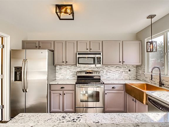 Stunning fully renovated 3 bedroom home in the highly sought after Park View Meadows community! This home features an open floor plan with a large living room off the entry that is complete with an upgraded ceiling fan, large windows to let in the natural light and is open to both the dining room and kitchen. The kitchen is an entertainer's delight with gorgeous upgraded counters, a custom backsplash, copper finish farm style sink with a modern faucet, designer lighting including vintage style Edison bulbs, stainless appliances, light cabinets with matching hardware, a pantry, breakfast bar and is adjacent to the dining room! The spacious dining room is a great gathering space with backyard access and upgraded lighting to match the kitchen. The primary bedroom won't disappoint with a large walk in closet and custom remodeled en suite full bath complete with a vintage style claw footed soaking tub and large vanity. Two secondary bedrooms share an additional full bath. The unfinished basement offers plenty of space for a wine cellar, home gym, home office, game room, theater or additional guest quarters. Step out on your large deck and enjoy the fresh air while soaking in the sun with plenty of space for a garden, play equipment or for you furry friends. Close proximity to Bellewood Park, Wagon Trail Park and Grandview Dog Park, Quincy Reservoir and Cherry Creek State Park as well as several other area parks for outdoor adventure. You're just a short drive to Town Center at Aurora, Highpoint Marketplace, Buckley Square and Seven Hills Plaza as well as several other shopping malls/centers. With plenty of options for outdoor adventure, dining, shopping and entertainment close by there is something for everyone!