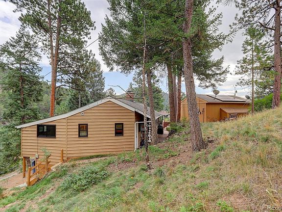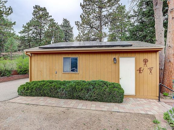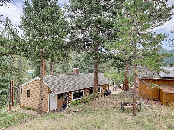 Nestled in the serene beauty of Indian Hills, this delightful log cabin offers a perfect blend of rustic charm and modern comfort. Spanning 1,167 square feet, this cozy one-bedroom, one-bathroom home is a tranquil escape from the hustle and bustle of city life. Step down to the patio garden entrance where outdoor enthusiasts will appreciate the private sitting area. It’s perfect for enjoying Colorado's fresh mountain air and stunning natural surroundings. Walk inside this 1925 cabin and be greeted by the warmth of hand-hewn log exposures and beams. A classic rock fireplace fueled by gas logs provides the ultimate mountain living experience. The cabin features a bright open-living concept with a spacious feeling enhanced by views from every window. The granite and stainless-steel kitchen leads to a mudroom, full bath and private bedroom. The sun-drenched sunroom is a versatile space that is ideal for morning coffee, a quiet reading nook, or simply soaking in huge views across Parmalee Gulch. Natural gas and community water supply this one-of-a-kind home. Solar panels and new windows keep energy costs very affordable. The walk-out basement provides additional living or storage space, offering flexibility for your lifestyle needs. This home includes a two-car garage, ensuring ample parking and convenience. Whether you’re unwinding after a day of hiking or entertaining guests, this property offers a serene setting for comfort and relaxation. With its picturesque location and charming features, this log cabin at 20958 Taos Rd is not just a home, it's a peaceful retreat waiting to welcome you. Don’t miss your chance to experience the unique beauty and tranquility of this mountain haven.