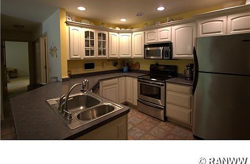 Open concept, stainless appliances, vaulted clgs, French doors, separated double sink area, tiled walk in shower, lg walk in closet. Conveniently located, Affordable "in the woods "living! Note: Town of Stanley will not allow Twin home classification, so home is considered a condo. Only cost you have is your home owners insurance which is $600/yr. Limited condo rules.