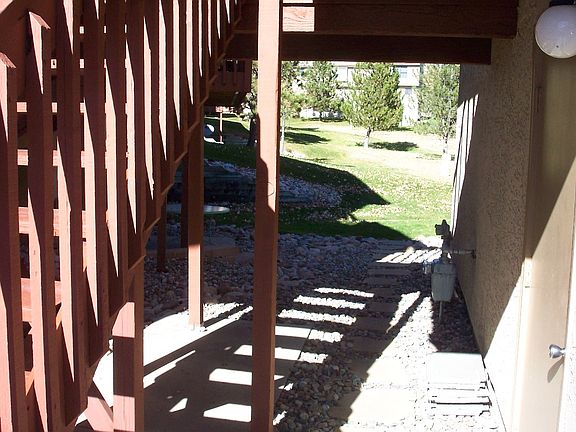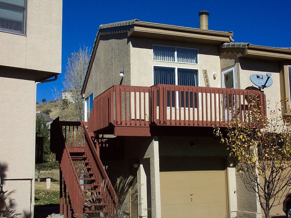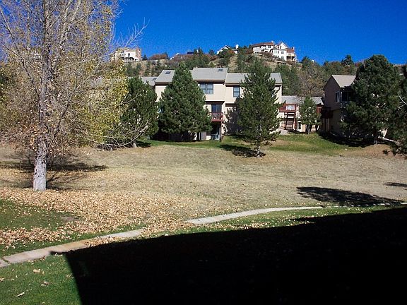 NICE END UNIT IN ROCKRIMMON NEAR THE FOOTHILLS AND UTE VALLEY PARK. NICE VIEWS FROM THE LARGE FRONT DECK. REAR OF THE UNIT FACES TOWARD A LARGE GRASSY AREA WHERE DEER OFTEN VISIT. HIGH VAULTED CEILING IN THE LIVING ROOM AND BEDROOM. LARGE WALK IN CLOSET--STACKABLE WASHER/DRYER--HARDWOOD FLOOR IN THE KITCHEN AND HALLWAY. KITCHEN HAS A PANTRY AND ALMOST NEW FRIDGE AND SMOOTHTOP STOVE. SEPERATE DINING AREA AND WOOD BURNING FIREPLACE. ATTACHED ONE CAR GARAGE WITH DOOR OPENER. NEAR SHOPPING AND EASY ACCESS TO I-25. (ONE DOG UNDER 30 POUNDS WITH ADDITIONAL DEPOSIT ALLOWED) Exterior maintenance and trash pickup included.