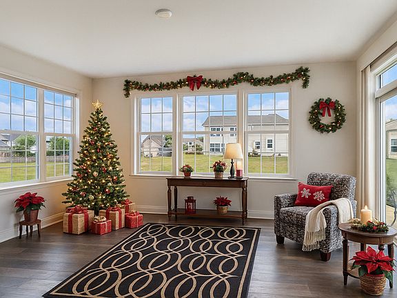 QUICK CLOSE POSSIBLE on this BEAUTIFUL Ranch "Ridgefield" Model in Sought-After Raintree Village w/Clubhouse, Pool & More! Built in 2023, this 2-Year New Ranch home offers 2,441 SqFt of Living Space including the Add-On Sunroom... the perfect Formal Dining Room, Play Room, Exercise Room... whatever you need! This SPACIOUS OPEN FLOOR PLAN w/9-Foot Ceilings, includes a Huge Kitchen, adjoining Dining/Breakfast Room, Great/Family Room, 3 Big Bedrooms, 2 Full Baths, a 3-CAR GARAGE, a GORGEOUS NEW PAVER PATIO w/SEAT WALLS & GRILLING STATION w/Natural Gas Hook-Up, Top-of-the-Line "Designer Select" Kitchen, Bath & Flooring Packages, and More. The Kitchen boasts 42" Aristokraft Soft-Close Cabinetry w/Pull-Out Shelves, Crown Moulding & Lazy Susan in a Warm Durham Toasted Colada Finish, Complimentary Manhattan Gray Quartz Countertops, Functional Breakfast Island, High-End GE Profile Series Stainless Steel Appliances including a Built-In Oven & Microwave, Cooktop w/Hood and In-Island Dishwasher, LED Surface-Mounted Lighting, Pantry Closet, and a Stylish Subway Tile Backsplash. Both Baths include Matching Aristokraft Vanities in a Korbett-Flagstone-Maple Finish & Quartz Countertops, and the Spacious Primary enSuite features a Tray Ceiling and Full Bath w/Double Sink Vanity, Linen Closet, Deluxe Walk-In Shower w/Seamless Glass Doors, Water Closet, and Walk-In Closet. This Spacious Home offers High-End Touches everywhere you look... Wide-Plank LVP Flooring, Shaw Carpeting, Custom Blinds, DC Drive Modern Forms Smart Fans, Smart Home Lighting & Features including a Ring Alarm & Smoke/CO Listener, Ecobee Thermostat w/Traveling Bee Smart Sensor, Schlage Keyless Entry & More! 1st Floor Laundry includes Washer & Dryer w/Splash Sink. 1,600 Sq Ft Basement includes a Tall Full Concrete-Bottom Crawl for Plenty of Storage & Rough-In for Full Bath. Raintree Village is a Newer Clubhouse Community w/Loads of Amenities including Clubhouse, Swimming Pool, Fitness Center, Game Room, Tennis Courts, Park/Playground, Bike/Walking Path, Baseball Diamond & More! GREAT Location w/In-Subdivision Middle School, Nearby Shops & Restaurants, and only minutes from Whitetail Ridge Golf Course and Raging Waves!