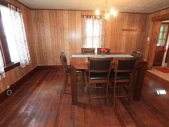 Great starter home featuring 5 bedrooms and 1 1/2 baths. The main living area features a living room, dining room and large entry all with hardwood floors. The large kitchen has an island and a possibility for a small table and chairs. The upstairs has 5 bedrooms and 1 full bathroom. Outside you have a detached garage and storage shed. The house has a newer oil forced air furnace and a coal/wood furnace for backup.