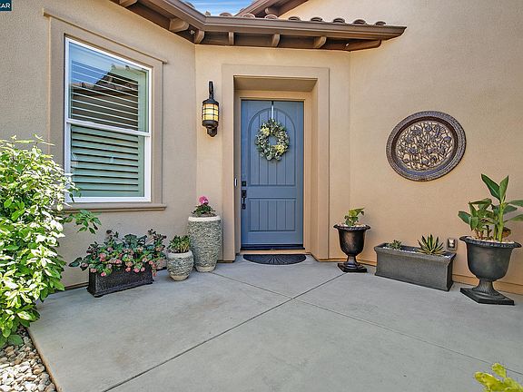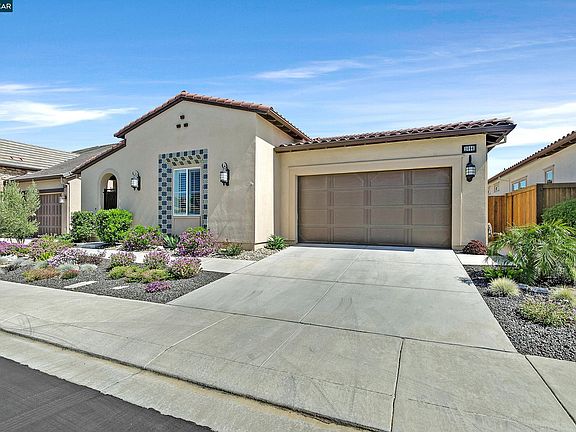 Welcome to this stunning Mediterranean-style home located in the coveted Trilogy at the Vineyard 55+ community. This gorgeous home offers 2 bedrooms and a den that could easily be converted into a 3rd bedroom, providing plenty of space for your family and guests. Enter this beauty through a private courtyard with lush landscaping that is the perfect place for your morning coffee. From the foyer, you will be greeted by a spacious and airy floor plan. The living room features a great place to relax and unwind with large windows and views out to back patio area. The kitchen is a chef's dream, complete with stainless steel appliances, granite countertops, and plenty of cabinet space. The bedrooms are spacious, boasting plenty of closet space and natural light. The primary bedroom suite showcases a luxurious bathroom with dual vanities, 2 walk-in closets, a sitting area, and a spacious shower with bench seat. The outdoor patio area is and entertainer’s dream, with a built-in BBQ and fireplace, creating an ideal atmosphere for summer parties or cozy winter nights. Don't miss the tandem 3-car garage. Enjoy resort-like living, planned activities, tennis, pickle ball, bocce, workout facilities, indoor and outdoor pools, spa, onsite restaurant and more!