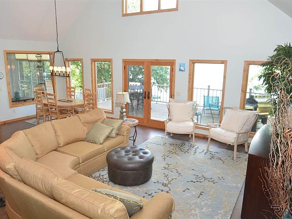 The perfect lake home in move-in condition. 100' of lake frontage terraced for outdoor enjoyment. Filled with sunshine and amazing views. The open floor plan easily accommodates furniture and guests. The kitchen features a unique granite island, stainless steel appliances, and dining area opening to the upper level 28 x 12 composite deck. 4 bedrooms including master suite, 3 full bathrooms, and a loft area to use as you wish. The finished lower level has a walkout family room with game area, 2 bedrooms, full bath, and storage room. Step outside to the 35 x 20 paver patio. (Craving quiet? Slip away to the 3 season room for a quick nap.) The 15 x 9 boat house provides great storage and easy access to all of the necessary water toys.