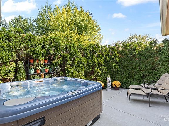 Welcome to this stunning Fall River home in Nampa, Idaho! This spacious 4-bedroom, 3-bath property features a gorgeous kitchen with custom cabinets, granite countertops, travertine flooring, and a large pantry, perfect for any home chef. The open dining area flows seamlessly into the living spaces, where a cozy 2-way gas fireplace connects the office/den and living room. The expansive master suite boasts a private second patio with an included hot tub and a walk-in closet. Bonus room, bath and additional large bedroom upstairs! Step outside to enjoy the beautifully landscaped, fully fenced yard with mature greenery and a serene water feature, along with a large covered patio and a dog run—ideal for outdoor gatherings. HOT TUB Included! With plenty of extra storage throughout and a 3-car garage, this home has it all! Work from home or a gamer? This home has High Speed Fiber Internet!!! A must-see property for anyone seeking comfort, style, and convenience!