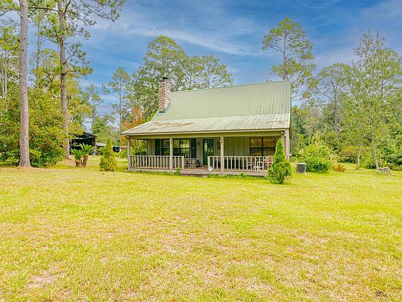 Looking to escape to a quiet cabin in the woods? Here it is, nestled among over 17 acres of natural beauty. The home and cleared space around it sit completely encased from any neighboring homes and the road. The winding driveway brings you back to a cabin, barn, and pond. The home is custom built and has a lovely cabin style appeal. The fireplace is a stunning hand crafted stone build that is the highlight of the main floor. The living room has vaulted ceilings with gorgeous wood beams and a wood staircase to the second floor. There is a primary bedroom on the main level, and a second bedroom with another loft bedroom on the second floor. All bedrooms have walk in closets. The kitchen and dining area are just as welcoming with bar seating, beautiful cabinetry and a breakfast area. There is beautiful solid wood paneling and trim throughout the home making for a perfect cabin feel. Plenty of porches for soaking in your surroundings as there is a large front porch and a screened back porch. Outside you can roam about as you wish and enjoy your own tiki-style bar overlooking the pond! This is set up and ready for enjoyment! A large barn with lean-to is perfect for a workshop, boats, RV or ATV’s. This gem among the woods sits in a part of the county known as “Elsanor” and is centrally located making for easy commutes to nearby towns, the Alabama/Florida state line, and all beaches, yet it is remote and desirable for anyone looking to live secluded from neighbors, noise and surround themselves with nature! This is definitely a property to see in person to get the full feel and layout of the land. Rural living still exists in Baldwin County and this is it!
