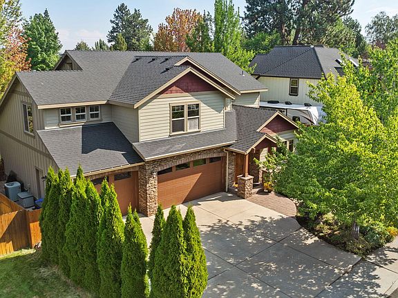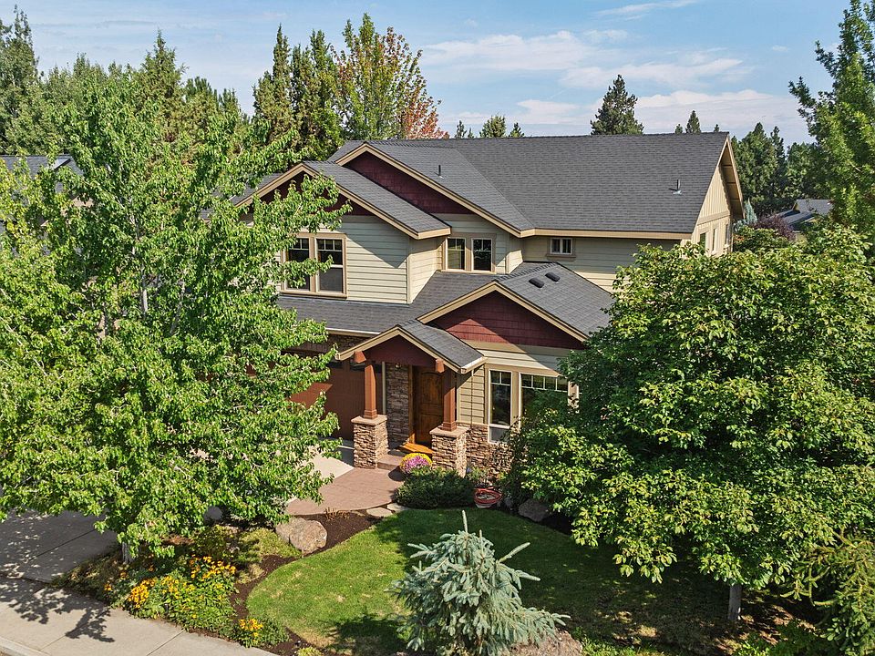 Custom-built elegance in Bend's Tanglewood neighborhood. This 4-bedroom, 3-bath home includes a main-level office/flex room and 2,761 sq ft of refined living. Solid alder doors, wood-wrapped windows, hardwood floors, and a chef's kitchen with granite island, Wolf cooktop, and Bosch double ovens reflect thoughtful craftsmanship. The oversized primary suite offers a sitting area, dual walk-in closets, soaking tub, and tile shower. Outdoors, enjoy a fully fenced yard professionally landscaped by a master gardener, complete with raised garden beds, patios, and a charming potting/garden storage shed. Built-in speakers, central vacuum, and 3-car garage complete the offering.