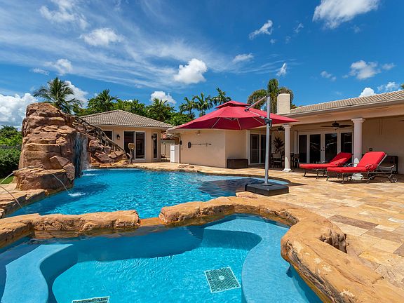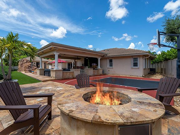 Welcome to Florida living at its finest, in the highly sought after, gated Estancia West neighborhood of Central Boca, near everything Boca has to offer. This amazing home is located off Glades Road just a couple mins from the world class Town Center Mall, and is situated directly between I-95 and the Florida Turnpike, making it a breeze for any commute. Feel like you're on vacation everyday in this one of a kind 6 bedroom, 6 full bathroom Resort style home that boasts a world class pool complete with waterfalls and built in waterslide, a 1/1 guest house, covered bar and lounge area, basketball court, fire pit, and more! The interior of the main house features two separate wings with a split floor plan, ample living spaces, and a spacious chef's kitchen featuring a Thermador Double Oven, Wolf Range, Sub Zero Double Refrigerator, and Wine Cooler. This home is truly an entertainer's dream, inside and out. Located at the end of a quiet cul-de-sac, with southern exposure and no rear neighbor, it's perfect for families with children and/or pets. Don't miss out on this amazing home that has something to offer for the entire family.