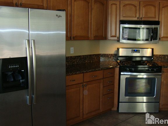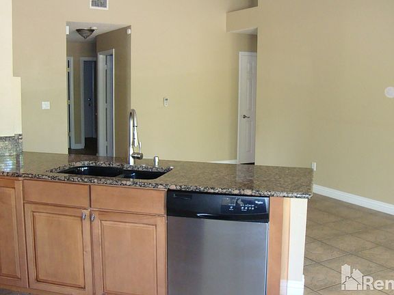 This beautiful home features stainless steel and granite in the kitchen; tile and laminate throughout the home except for the master which has carpet. Huge back yard with easy to care for desert landscape.