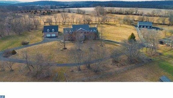 This spacious home with horse barn and multiple garages sits in the center of a 14 acre private sanctuary which is surrounded by many acres of farmland. The home's kitchen hosts a large granite center island, stainless appliances, a tile backsplash, a large pantry, loads of custom cabinetry, extra prep sink and views of the rolling pastures from the large bay window. The formal dining room has French doors, hardwood floors and large windows, and the entire first floor has radiant floor heat. The family room is graced by a brick floor-to-ceiling fireplace and French doors leading to the hardscape terrace with hot tub and pergola. The master suite includes a fabulous sitting room with two huge walk-in-closets and hardwood floors, and there are three additional bedrooms, all with very large closets. The fifth bedroom is currently used as a media room and has a soundproof floor. There is a 6-stall barn with heated tack room and wash stall, large pastures and endless riding opportunities in the surrounding farmland. The two-story detached garage has radiant floor heat, car lift, room for 6 cars, and a woodshop. As a bonus, there is a full in-law suite/apartment on the lower level with a kitchen, full bath, living area with second fireplace, and its own entrance and driveway. This property is only 45 miles from center-city Philadelphia, and can be placed in Act 319 for potential reduced tax assessment.