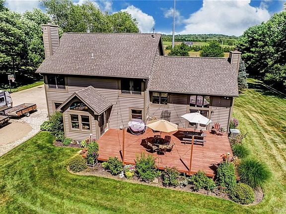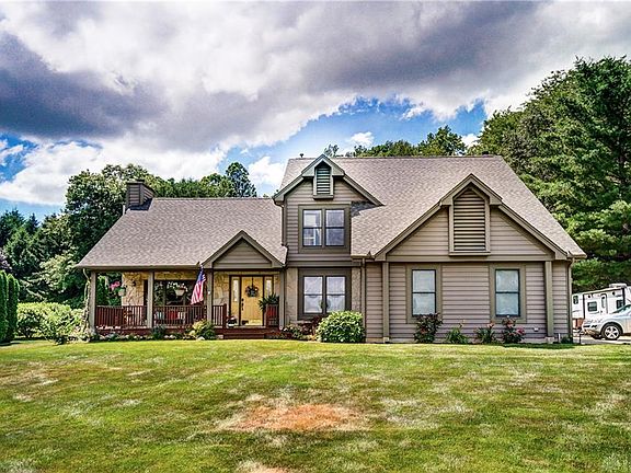 Country living w/city conveniences on 2.25 acres of serenity! Driving up to the home, you'll be impressed w/ the meticulous landscaping & inviting front porch. With 3,252 sq. ft. there is loads of space & plenty of storage! Upon entering the foyer, you'll notice attention to detail w/ a 2-story wood plank ceiling. The large eat-in kitchen has it's own fireplace & looks over the beautiful backyard. The huge family room is the perfect place to entertain or relax with the family & there is a study/office for anyone working from home. Finishing off the first floor is the laundry room & 1/2 bath. The master suite includes a beautiful bath, complete with a jetted tub, shower, vanity with dual sinks and a walk in closet. There are two more bedrooms upstairs and an additional full bath. The lower level is completely finished and has an abundance of storage. Topping it all off is a large rear deck and a storage shed for all your toys! (New Roof 2017, New A/C2019) 1 Year Home Warranty Provided