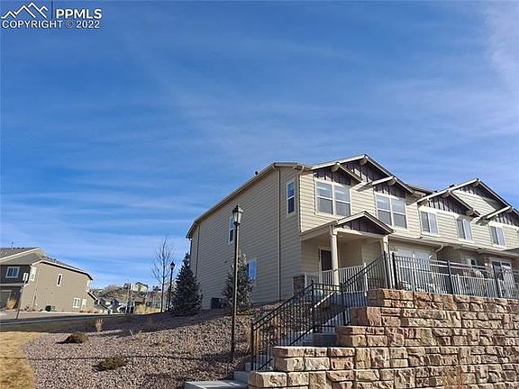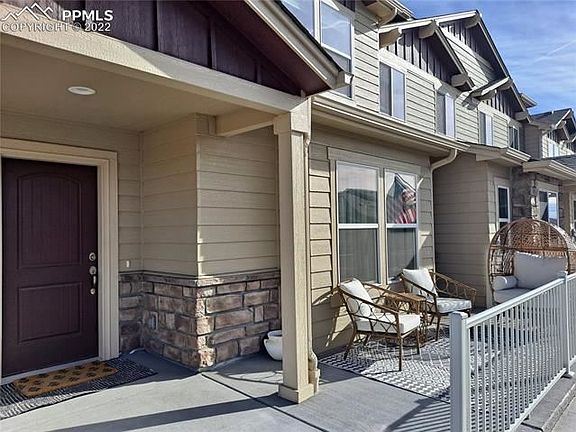 This stunning 3 bedroom, 2 ½ bath 2 story townhome is less than 2-year-old. It is an end unit with lots of windows and natural light. Located near Downtown Colorado Springs, with easy access to I-25, and Fort Carson. Features an open-concept floor plan, lots of natural lights and mountain views. Main level has 1/2 bath, spacious living room, dining room, and kitchen with granite countertops, stainless steel appliances and a pantry. The 2 car attached garage is completely insulated and dry walled and has a durable floor coating for easy cleaning. Upstairs is the master bedroom with sitting are and a walk-in closet; additional 2 bedrooms with walk-in closets, mountain, and Pikes Peak views. Master bath has dual sinks, and large free-standing shower. The 2 upstairs secondary bedrooms have a full bath off the hall. The nice and bright laundry room located upstairs. This community features a clubhouse, outdoor fire pit, gym, outdoor pool, hot tub, playground, dog wash and park, and a car wash.