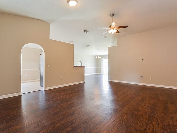 Please note, our homes are available on a first-come, first-serve basis and are not reserved until the lease is signed by all applicants and security deposits are collected. This home features Progress Smart Home - Progress Residential's smart home app, which allows you to control the home securely from any of your devices. Want to tour on your own? Click the "Self Tour" button on this home's RentProgress. Take a look at this recently renovated three-bedroom and two-bathroom rental home in Apopka, Florida. The living area is spacious and open, with attractive wood floors and vaulted ceilings. The dining room is large and features chair rail molding and a sliding glass door that provides plenty of natural light. The black and white stone countertops in the kitchen complement the white cabinets, brushed nickel door pulls, and stainless steel appliances. The master suite is expansive with an impressive adjacent bath featuring dual sinks, and other bedrooms offer hardwood flooring and plenty of natural light. Closets are roomy and offer lots of storage space. Outside, the fenced-in backyard has a large patio. Schedule a showing today.