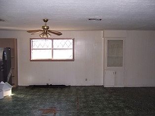 Home with 1860 sq ft, 3 BR 2 B, LR, DR, family room, 3 car carport sitting on corner lot with .55 ac. Fenced back yard with storage building. Need to replace floor covering and fix trim around home which seller will make allowance for.