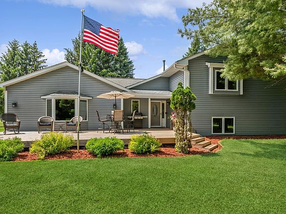 Welcome Home! Beautiful 3 Level Split home with 5 bedrooms & 3 Bathrooms on 8 Acres in Elk River. Bright & open living space w/vaulted ceilings & Main Level Laundry. Retreat to the master suite w/walk in closet and full bath. Cozy up by the gas-burning fireplace or escape to the sunroom to enjoy your morning coffee & beautiful views of the property. Wonderful space to relax & entertain with the 34x23 deck & Additional back patio. This 8-acre Oasis has mature trees, 40x60 Heated, & Insulated Stick Building w/12ft Door & 20x40 Office Space/Party room. Oversized 33x44 3-stall Garage, New Flooring & Paint throughout. Small town feel w/big city amenities. Shopping, Schools & dining nearby. A must see!